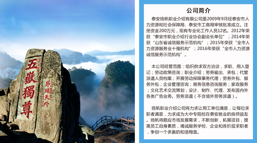 • 【招聘公告】泰安揚帆職業介紹有限公司某國有企業招聘簡章 [2025-10-29]